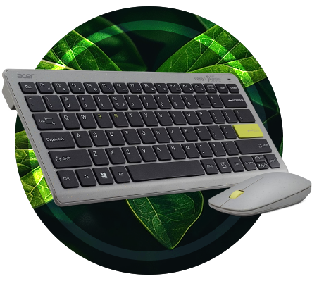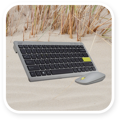 and eco-conscious with our Vero wireless keyboard and mouse set. Made with recycled materials, the compact silent keyboard sounds as discreet as it looks, while our mouse is designed for comfort, whether you’re a lefty or a righty.